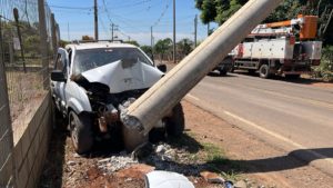 Um carro destruiu uma parada de ônibus após colidir com um caminhão em Cruzeiro do Sul. O acidente ocorreu na altura do km 65 da