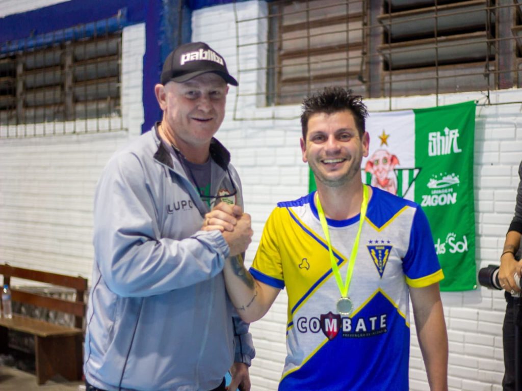 Foto: Anthony Abella Conte | Darlan Tessmann foi um dos atletas que recebeu medalha de destaque da sexta rodada; a entrega foi feita pelo coordenador, Roxo