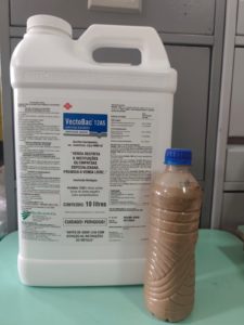 O BTi (Bacillus thuringiensis israelensis) é um larvicida biológico, composto por cristais proteicos e esporos que, ao serem aplicados na água, são ingeridos pelas larvas dos insetos, causando sua morte em até 24 horas após a aplicação. O método é considerado seguro e ambientalmente sustentável, pois atua de forma específica sobre as larvas do borrachudo, sem causar prejuízos a outros organismos aquáticos.