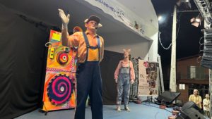 Um dos destaques da noite foi a peça de teatro “A Máquina da Páscoa”, que encantou as crianças e despertou sua imaginação com uma apresentação lúdica e envolvente. Também teve apresentação musical com Peninha e Banda e presença do Palhaço Batata. Para encerrar as festividades, a Banda Eletro Rádio trouxe muita energia ao público, tocando todos os estilos musicais e garantindo animação até o fim.
