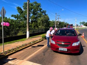 Durante a manhã, servidores, voluntários e representantes das entidades distribuíram materiais informativos e conversaram com motoristas e pedestres sobre a importância do diagnóstico precoce.