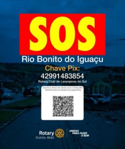 O Rotary Club de Cruzeiro do Sul divulga uma forma de ajudar a região afetada. Por meio de uma chave pix do Rotary Club de Laranjeiras do Sul (imagem abaixo) é possível fazer doações espontâneas. Ao longo desta semana deve ser lançada uma campanha específica.